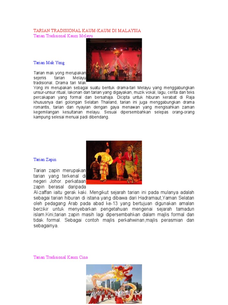 . Macam-Macam Tarian Tradisional Indonesia Beserta Gambarnya. Memandangkan Malaysia terdiri daripada pelbagai kaum menyebabkan wujudnya pelbagai persembahan tradisional. Bahasa indonesia itu umumnya berasal dari bahasa melayu pada zaman sebelumnya.